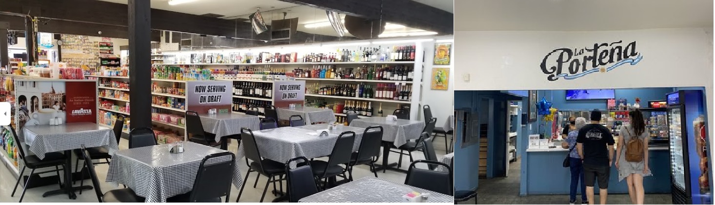 Sure enough: in the back half of the liquor store, there was a second business: a window to order food at, that had Argentinean candies and souvenirs, and a menu above to read from. Several tables with tablecloths and chairs were arranged in front of it. Behind it, a nice little lady was smiling, chatting with Jimena about Argentina, and discussing the hot food that could be ordered.