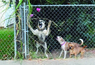 At the “manufactured home” complex in which we live, our neighbor’s mobile home has a fenced-in porch that faces toward our space’s driveway. The family there has two dogs, a gray bulldog and a little brown chihuahua, who fly into a rage anytime they perceive something or someone moving in their sight. Sometimes we will hear the “alarm” of their barks going off, only to glance out the window and see that the Amazon delivery person (or UPS, what have you) has dropped-off a package. And when Jime, or the kids and I go out to get in the car to go somewhere, they go absolutely wild! Agressively barking and snarling, as if to say “if only this fence weren’t here, we’d rip you to shreds!”