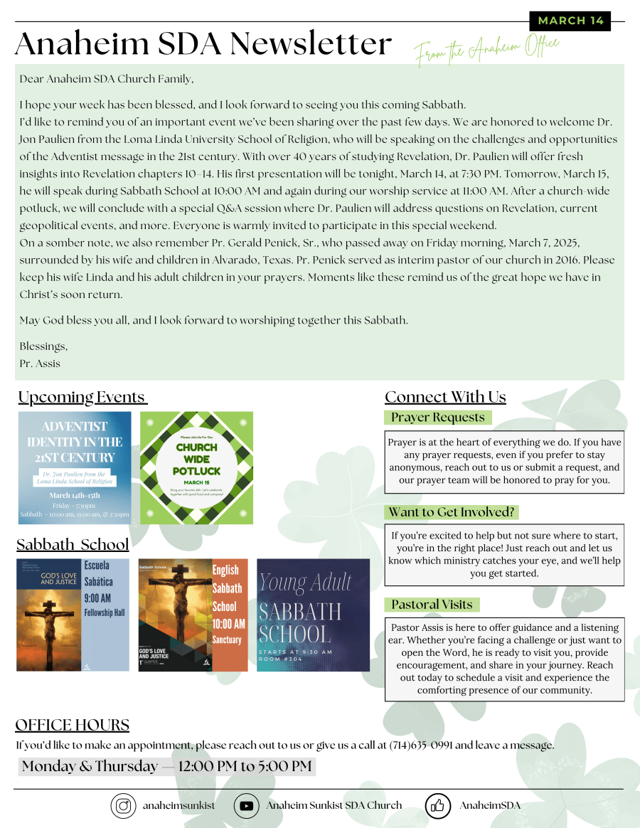 zoom.com Meeting ID: 705 395 5673 Pastoral Visitation Form Here Prayer Request Form Here Newsletter 3.15.pdf Newsletter 3.14.pdf Share this: Click to share on X (Opens in new window) X Click to share on Facebook (Opens in new window) Facebook Like Loading... Related Published by jeremiahtan963404 View all posts by jeremiahtan963404
