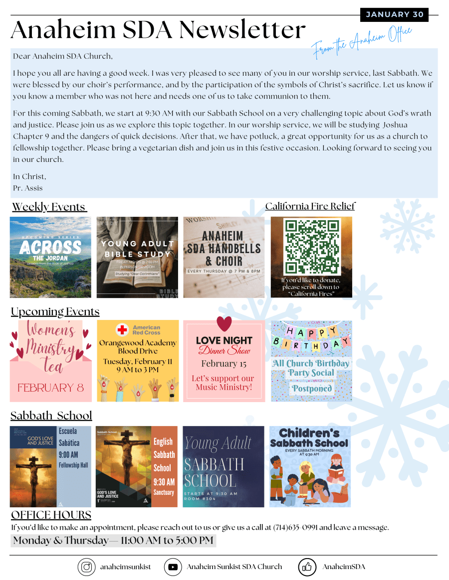 Anaheim SDA Newsletter — 1/30 â„ī¸